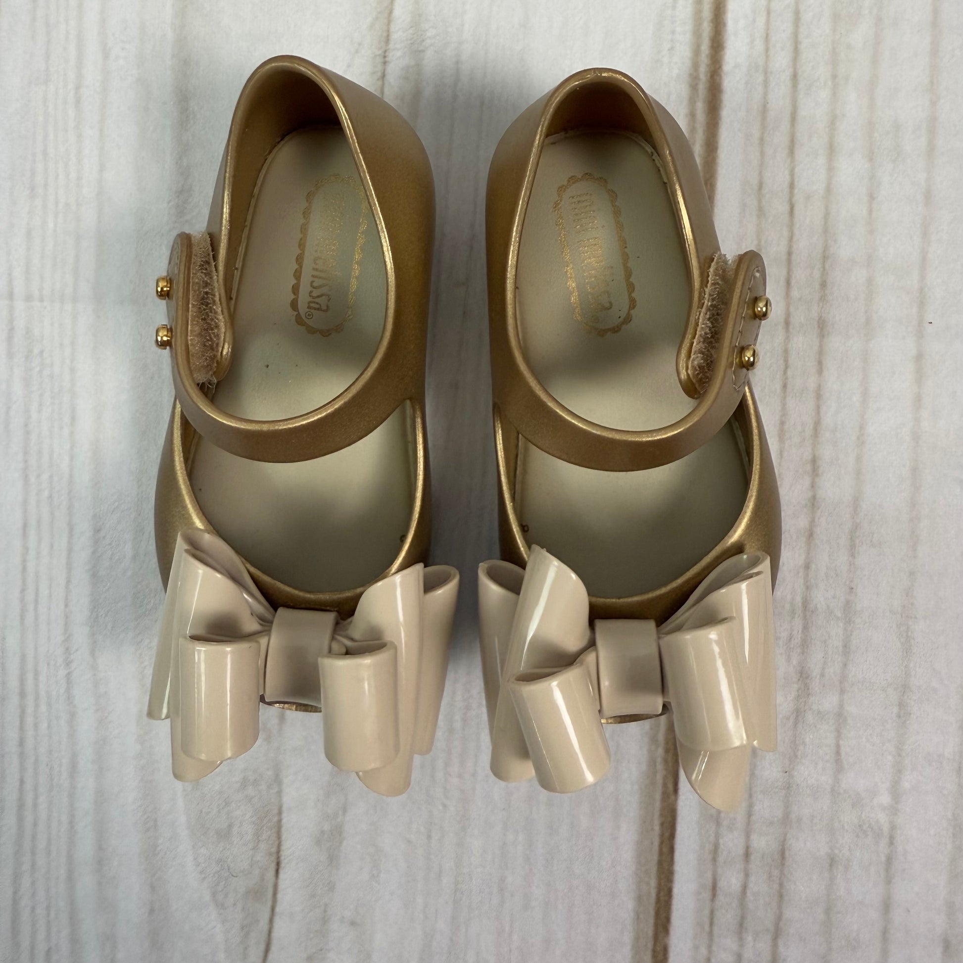 item: mini melissa ultragirl glitter gold shoes