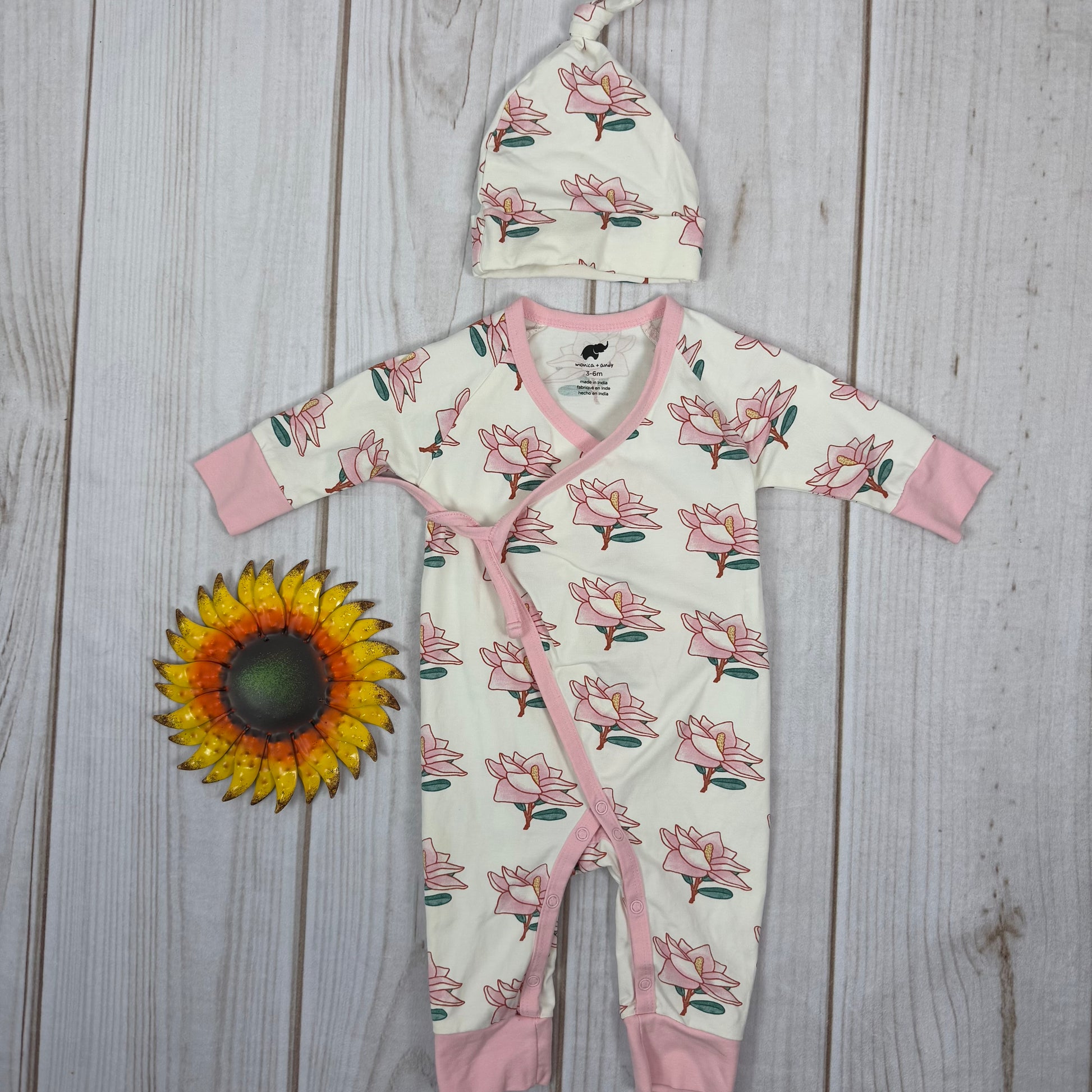 monica + andy kimono tie one-piece and hat 3-6M